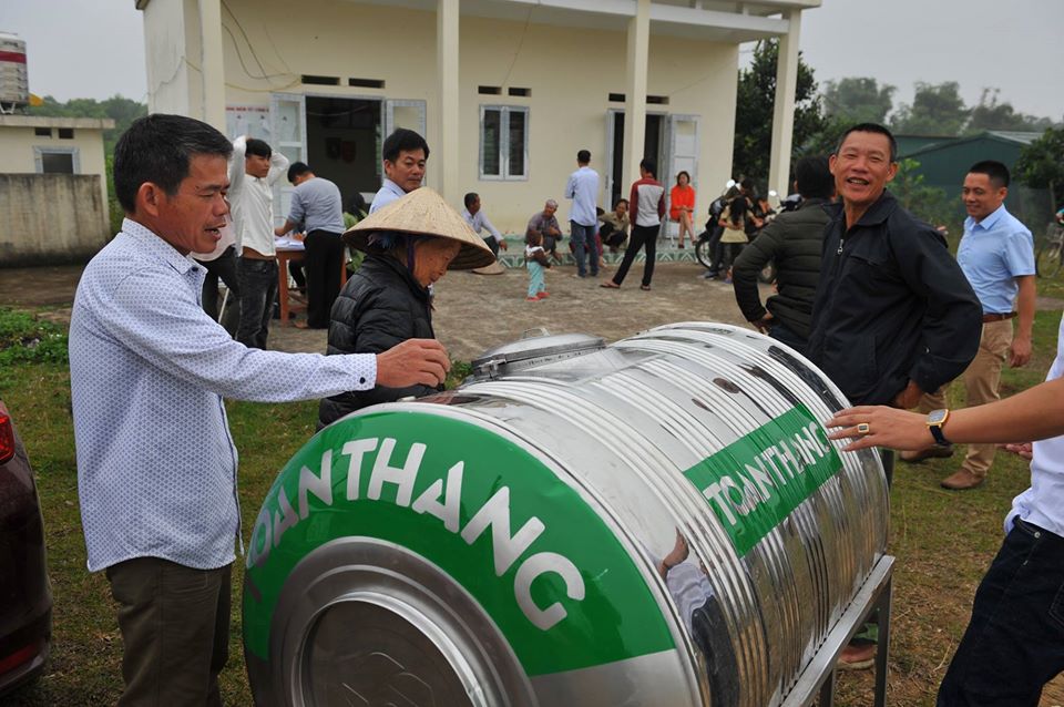 | Logo "TOÀN THẮNG" mới mềm mại trên nền vàng cam, được sơn trực tiếp trên thân bồn, tránh trường hợp hàng nhái, hàng giả. Quản lý mã hàng bằng mã vạch hiện đại |