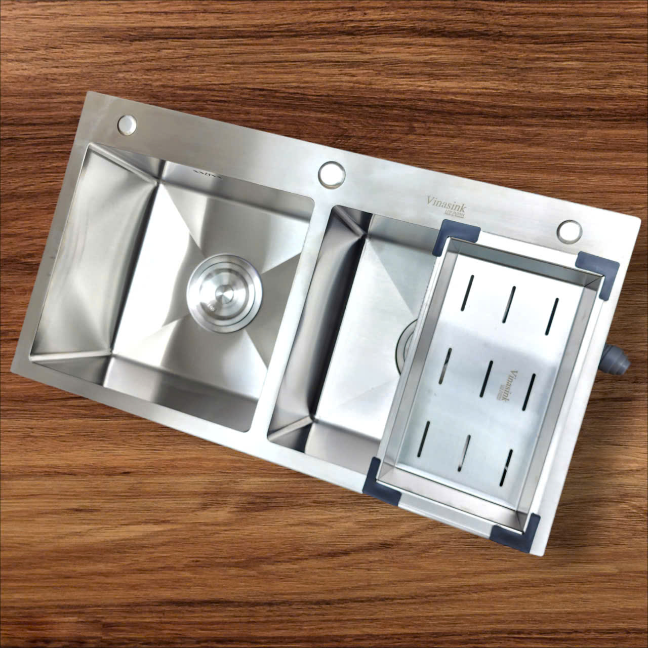 Không những vậy chậu rửa Vinasink được sản xuất với bề mặt chậu inox 304 có độ dày mặt chậu lên tới 3 ly và độ dày của hố chậu là 0,8ly. Bề mặt chậu có chờ sẵn 03 lỗ lắp vòi mang lại nhiều tiện ích tích hợp ngay trên mặt chậu rửa.
