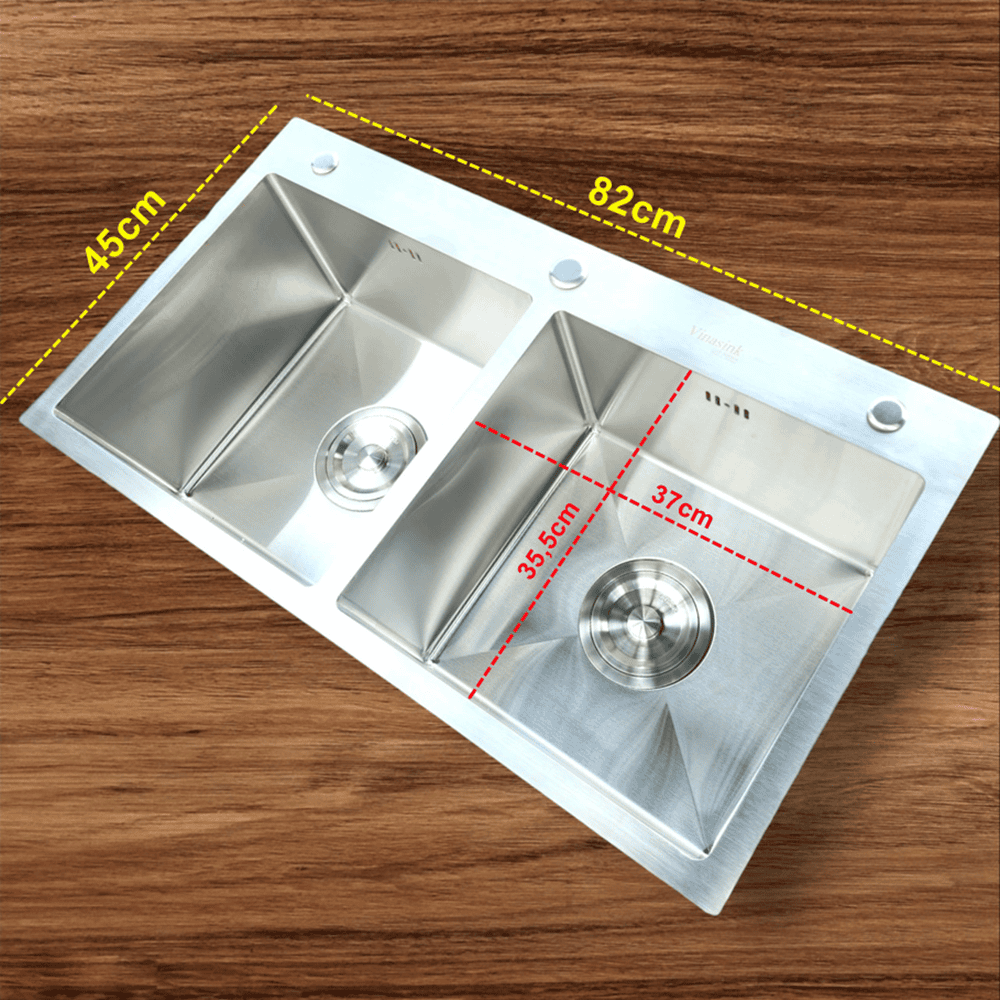 Chậu rửa bát inox Vinasink có độ sáng bóng tuyệt vời bởi chất liệu inox 304 nhập khẩu từ Hàn Quốc, độ cứng vững, chắc chắn hơn các dòng inox khác trên thị trường bởi hàm lượng Niken rất cao có trong inox. Chậu rửa bát là sản phẩm sử dụng hàng ngày với tần suất lớn, tiếp xúc trực tiếp với đồ ăn thức uống khi chế biến nên nó đóng góp một phần quan trọng trong việc bảo vệ an toàn vệ sinh thực phẩm cũng như an toàn sức khỏe cho người sử dụng. Ngoài ra chậu rửa cần đảm bảo đủ rộng để chứa đựng rửa được nhiều đồ như bát đĩa, xoong nồi, chảo kích thước lớn ...Chậu rửa bát Vinasink 2H8245 với kiểu dáng thiết kế 2 hố cân kích thước tổng chiều dài 82cm x Rộng 45cm x Sâu 23cm rất phù hợp với gia đình đông người, có không gian bếp rộng và phù hợp với các căn hộ kinh doanh nghỉ dưỡng cao cấp.